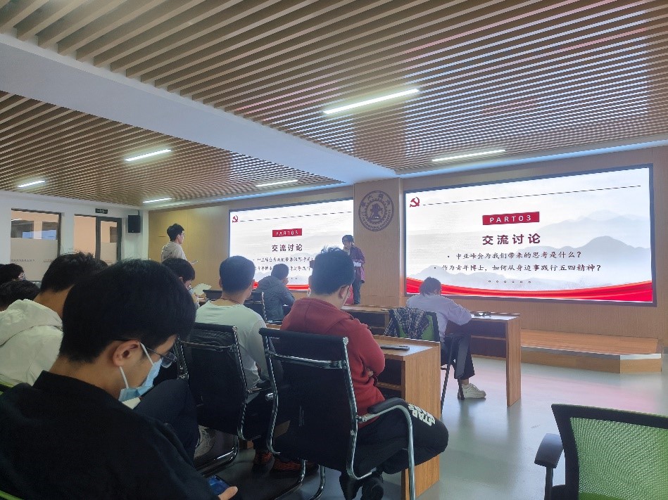 提供了良好的对外交流平台,同学们更应当把握住机会;三是博士党员更应该拿出积极向上的人生态度,在科学自信和文化自信上起到先锋模范作用。中亚峰会的成功召开彰显了中国国力的提升,而中国国力的提升正是因为一代代青年人不断地践行五四精神,当代博士更应继承弘扬和发展五四精神,为科技自力自强奉献自己的力量。