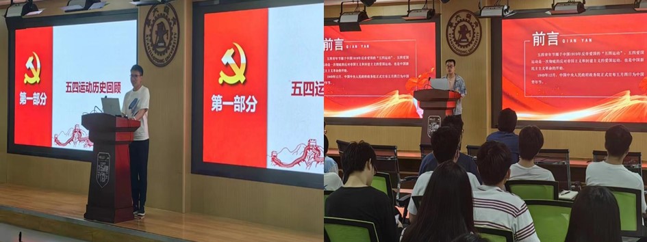 会上首先由学生代表作学习分享。党员李辰赫从历史回顾、历史意义、弘扬时代精神等三个方面讲述了五四运动的历史并学习其历史意义,号召大家传承五四精神,为当今的社会主义建设贡献力量。入党积极分子宋英政以 “高举五四火炬,永葆先进本色,争当青年先锋”为主题做了领学,并从寻源五四、体验五四、感悟五四三个方面分享了对五四精神的理解。他结合当今时事和社会热点分析并号召大家学习五四精神,争当青年先锋。