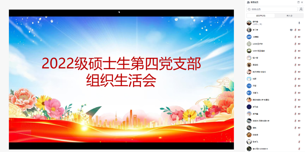 2022级硕士生第四党支部在力行楼2-4197召开“2025年两会专题学习”组织生活会。会议主要围绕“深入学习贯彻2025全国两会精神专题”开展。支部成员及入党积极分子以线上、线下相结合的方式参与会议,会议由支部书记廖作嘉主持。