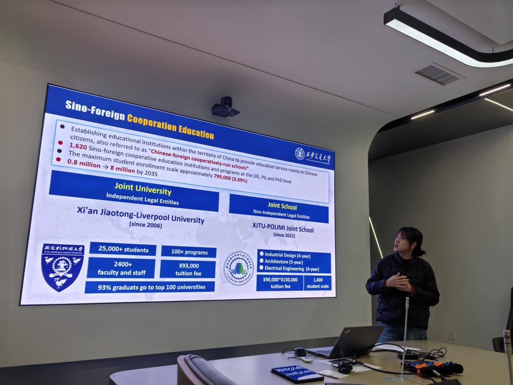 会上,国际处主管宫谜系统解读了中国中外合作办学的最新政策框架与西安交大的国际化发展规划,并针对MIPT代表团提出的问题逐一给予专业全面解答。